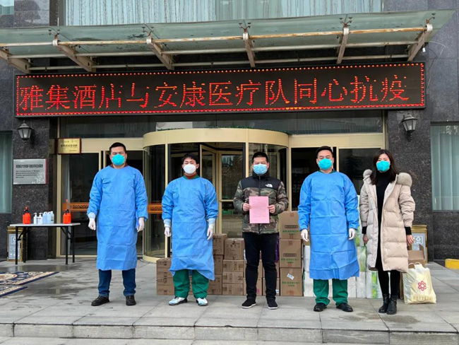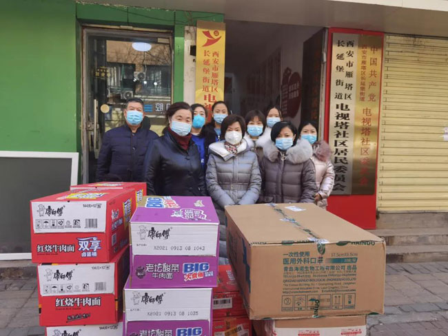 12月18日,学院为雁塔区长延堡街道电视塔社区捐赠一次性医用口罩3000只、消毒凝胶100瓶、生活物资若干,用于支持社区疫情防控需要。按照院党委全力做好安康医疗队生活保障工作的要求,长安雅集酒店负责人郑桂兰率二十余名员工克服人力物力困难,细致服务,确保医务人员们24小时都能吃上营养丰盛、热气腾腾的饭菜。学院积极协调千善基金为医疗队员捐赠N95口罩2400只、护目镜320个、防护服140套、酒精320瓶,用以支持其做好防护。此外,学院党委还为医疗队赠送了暖宝宝、保暖袜、卫生用品等近万元物资,为每位队员送上新春慰问信,表达学院教职员工对一线医务人员的关爱之情。